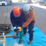 原木にドリルで穴を開け、そこに菌を打ち込む作業を一つ一つ丁寧に進めました。