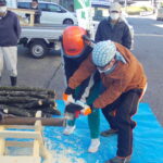 さらに、チェンソーを使って木を切る体験もさせていただきました。